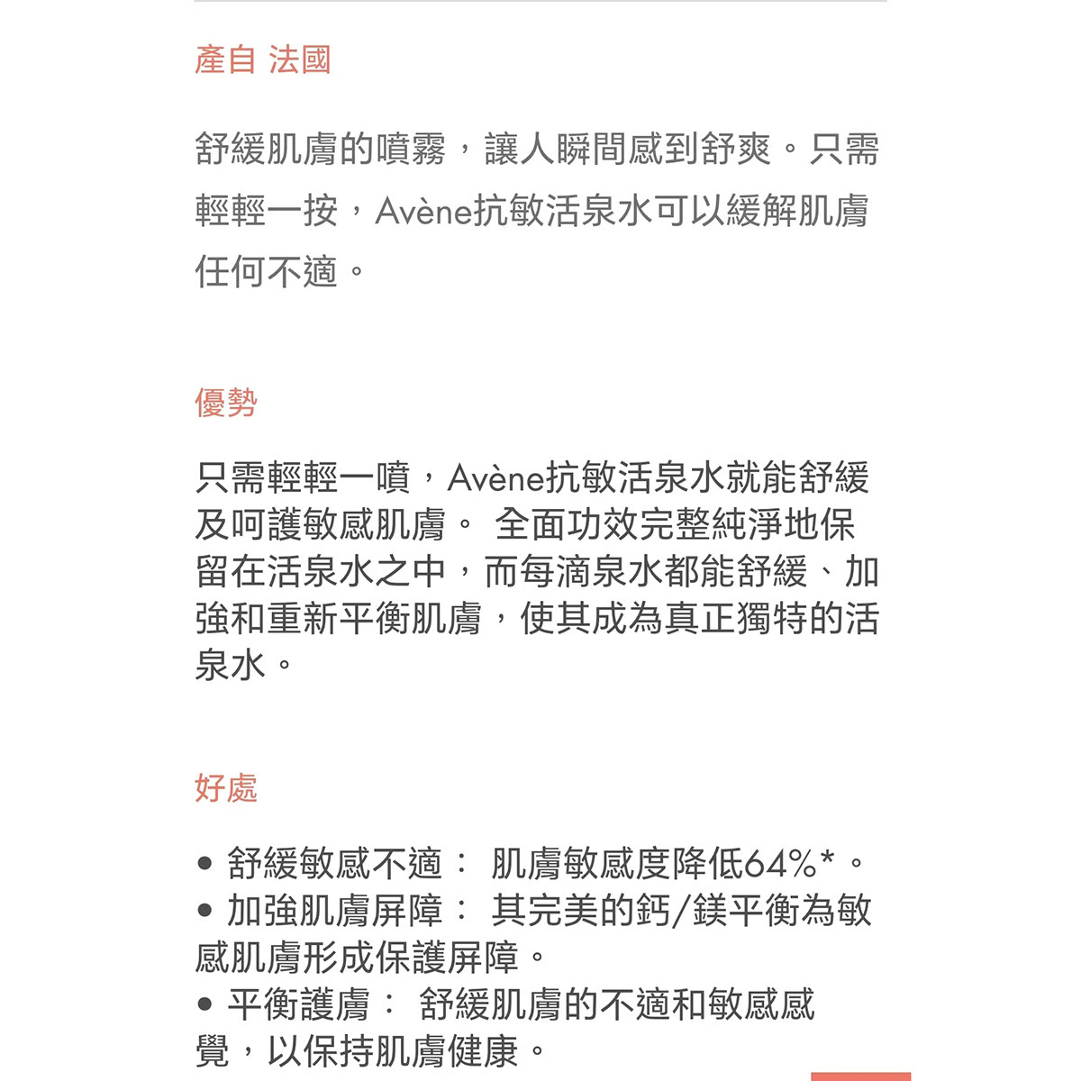 香港购Avene雅漾舒护活泉水喷雾300ml大喷爽肤水保湿 化妆水敏感