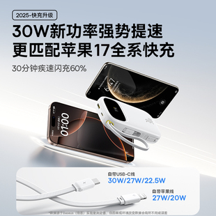 大容量20000毫安自带线快充移动电源适用小米苹果17专用官方正旗舰店 倍思2025新款 充电宝3c认证可上飞机