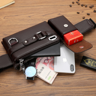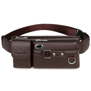 麦克袋鼠男士 腰包真皮手机包多功能牛皮小背包胸包休闲单肩斜挎包