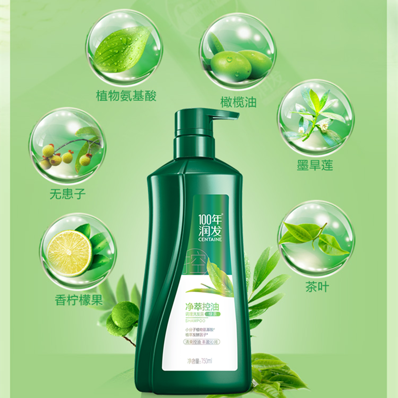 100年润发净萃控油洗发露750ml茶叶百年润发洗发水正品 官