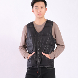 内穿夹棉背心短款 秋冬新款 黑大口袋修身 时尚 轻薄羽绒棉马甲男韩版