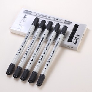 得力勾线笔记号笔双头美术专用小学生黑色蓝色红色油性笔马克笔儿童画画幼儿园防水防油不掉色大头笔一年级