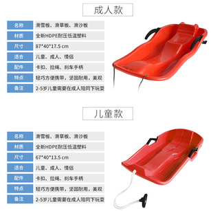 儿童成人款 加厚滑雪板滑草板滑沙板沙漠划草雪爬犁滑雪车单板雪橇