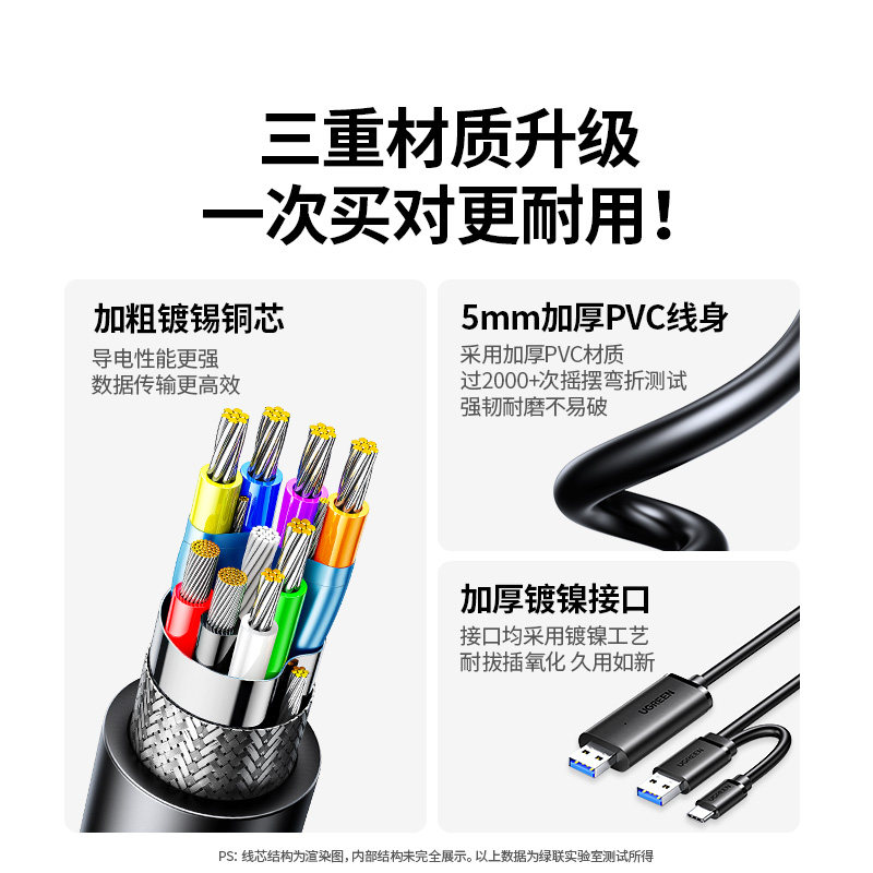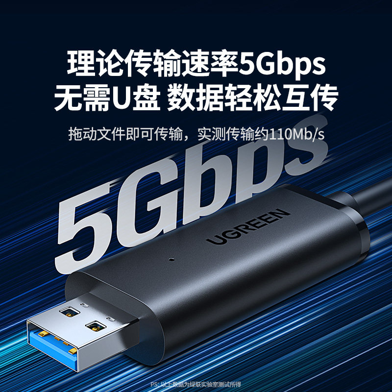 绿联双机对拷线USB3.0公对公连接线两台电脑传输数据线双机互联共享一套键盘鼠标type 机通用 c笔记本台式