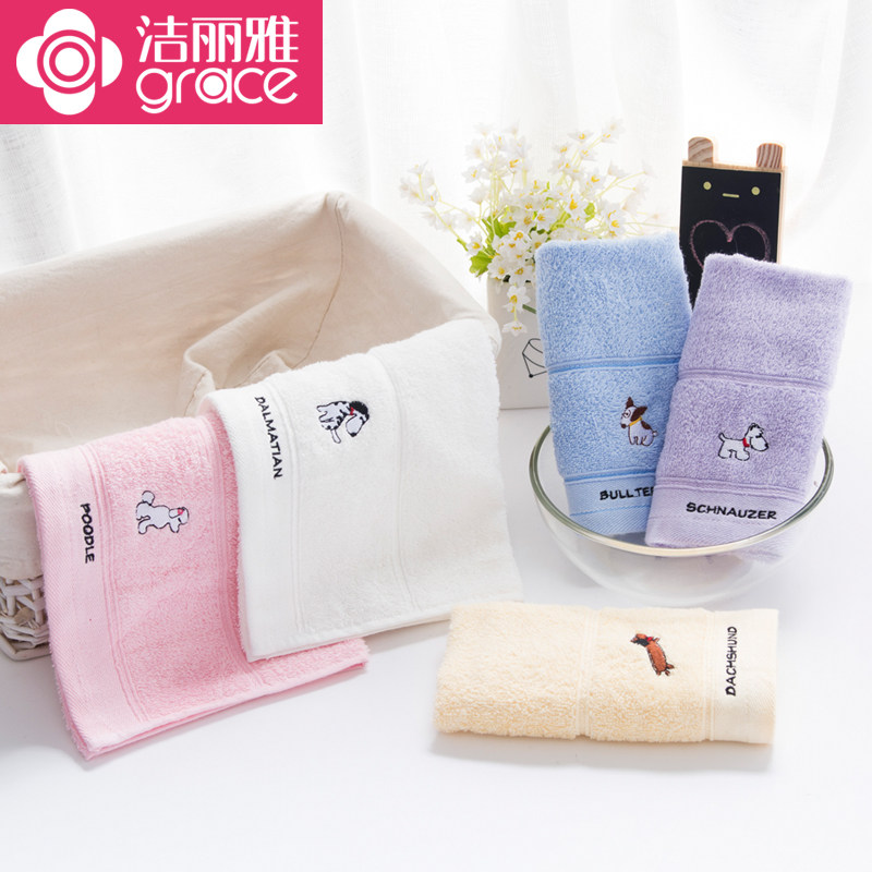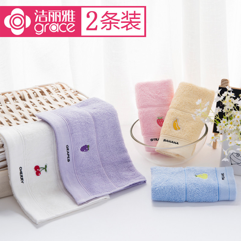 2条装 洁丽雅纯棉毛巾全棉儿童洗脸面巾柔软擦脸家用宝宝洗澡毛巾
