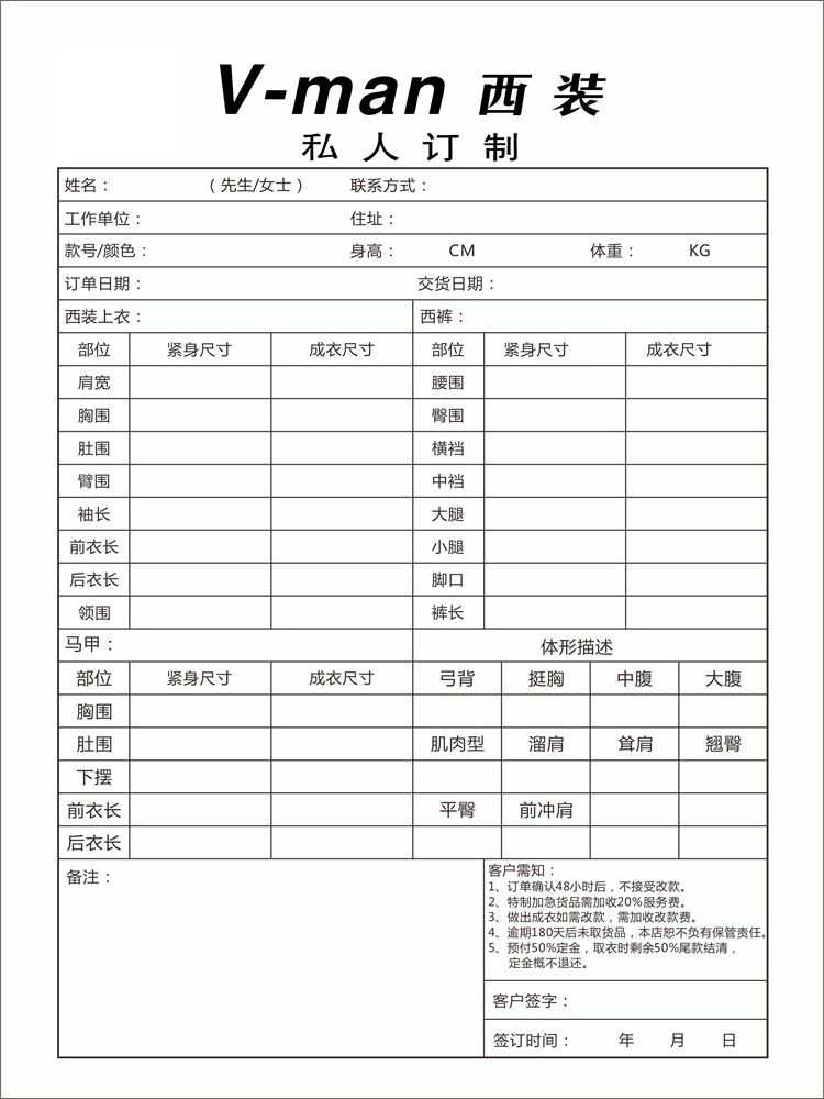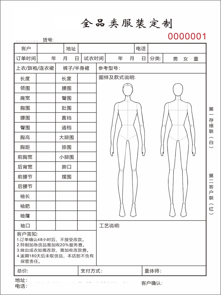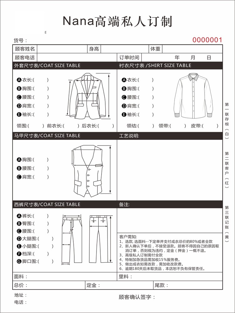 定制礼服婚纱嫁衣西装 定制销售单送定货单收据加工单制衣单据 服装