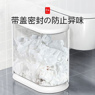 卫生间垃圾桶带盖客厅厕所窄夹缝专用可爱高颜值带轮2025新款 纸篓
