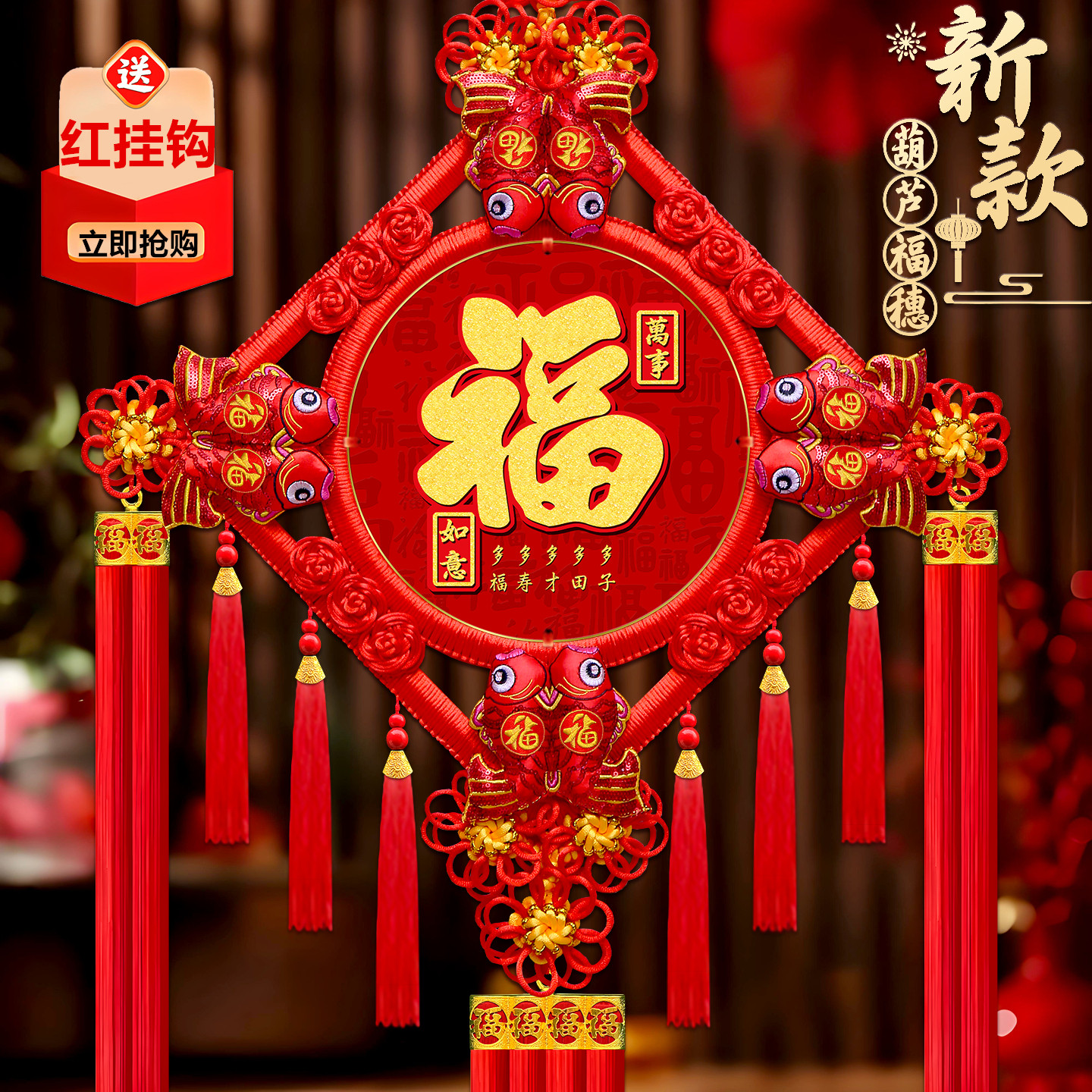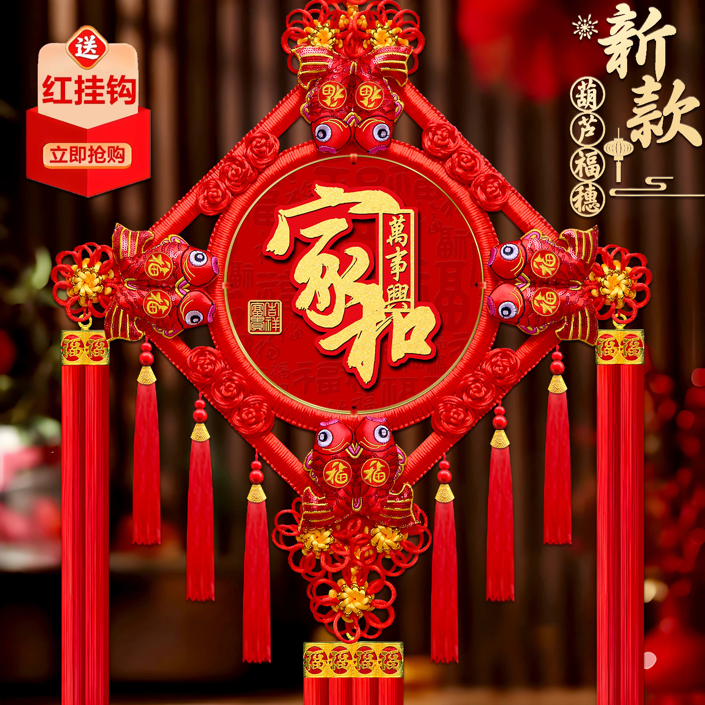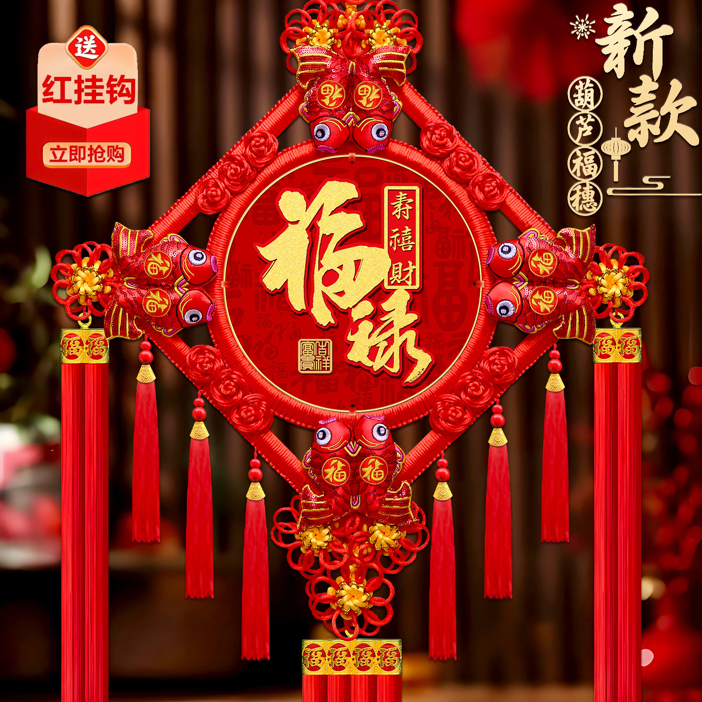 2025新款 饰 中国结挂件客厅大号桃木福字中国节玄关乔迁平安结装