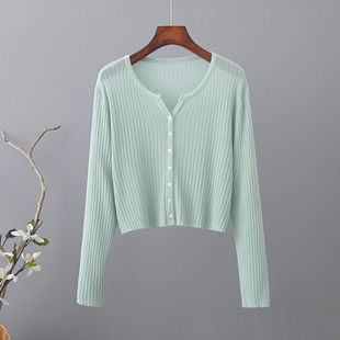 防晒衫 夏季 长袖 女短款 高腰配裙洋气薄外搭披肩空调房上衣 针织开衫