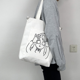 斜挎包包女2020新款 百搭文艺简约学生大容量单肩ins帆布袋 潮韩版