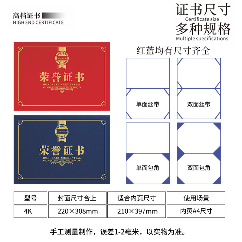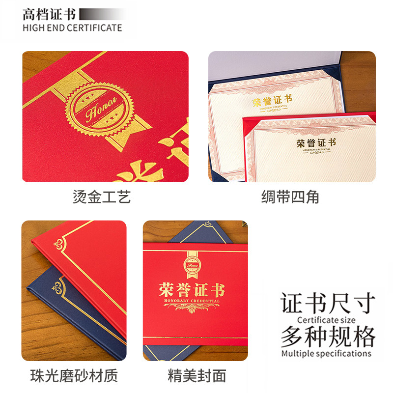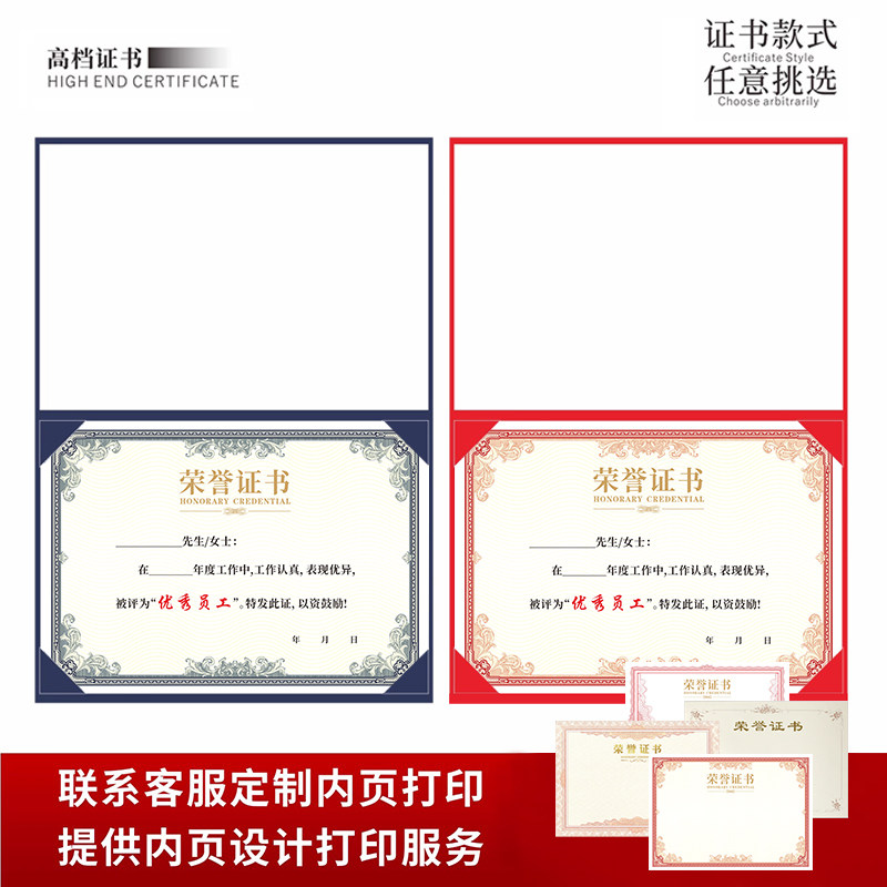 A4横版 荣誉证书结业聘书获奖爱心颁奖奖状定制做优秀员工内页打印
