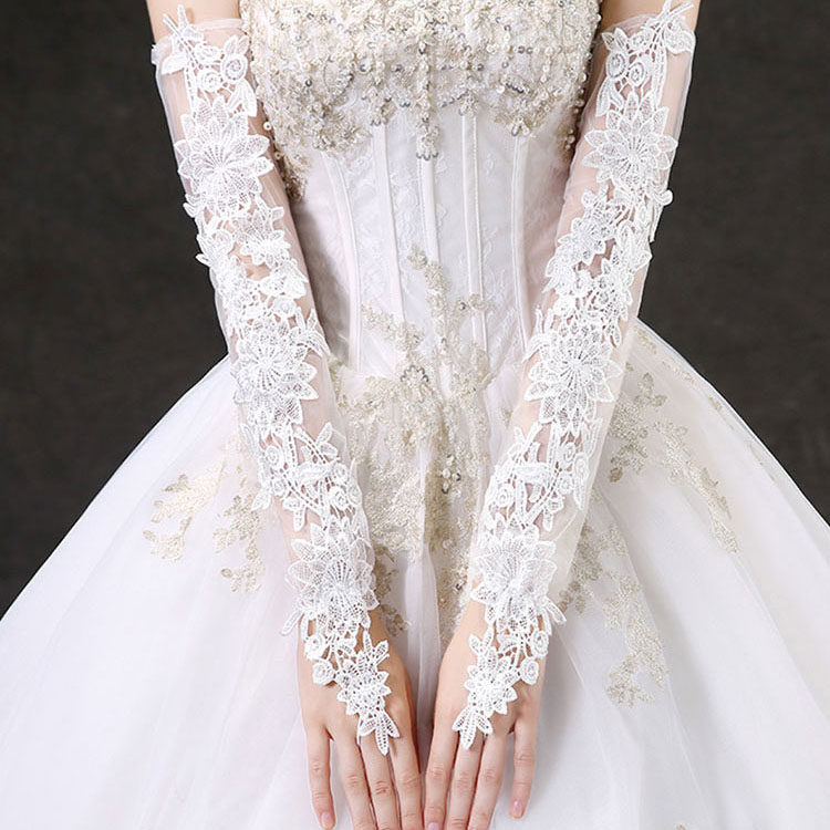 加厚保暖晚礼服敬酒服袖 冬季 套 2025新款 新娘婚纱手套结婚蕾丝长款