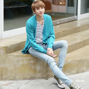 型小脚裤 男修身 韩版 青少年显瘦弹力铅笔裤 男士 男长裤 浅蓝色牛仔裤
