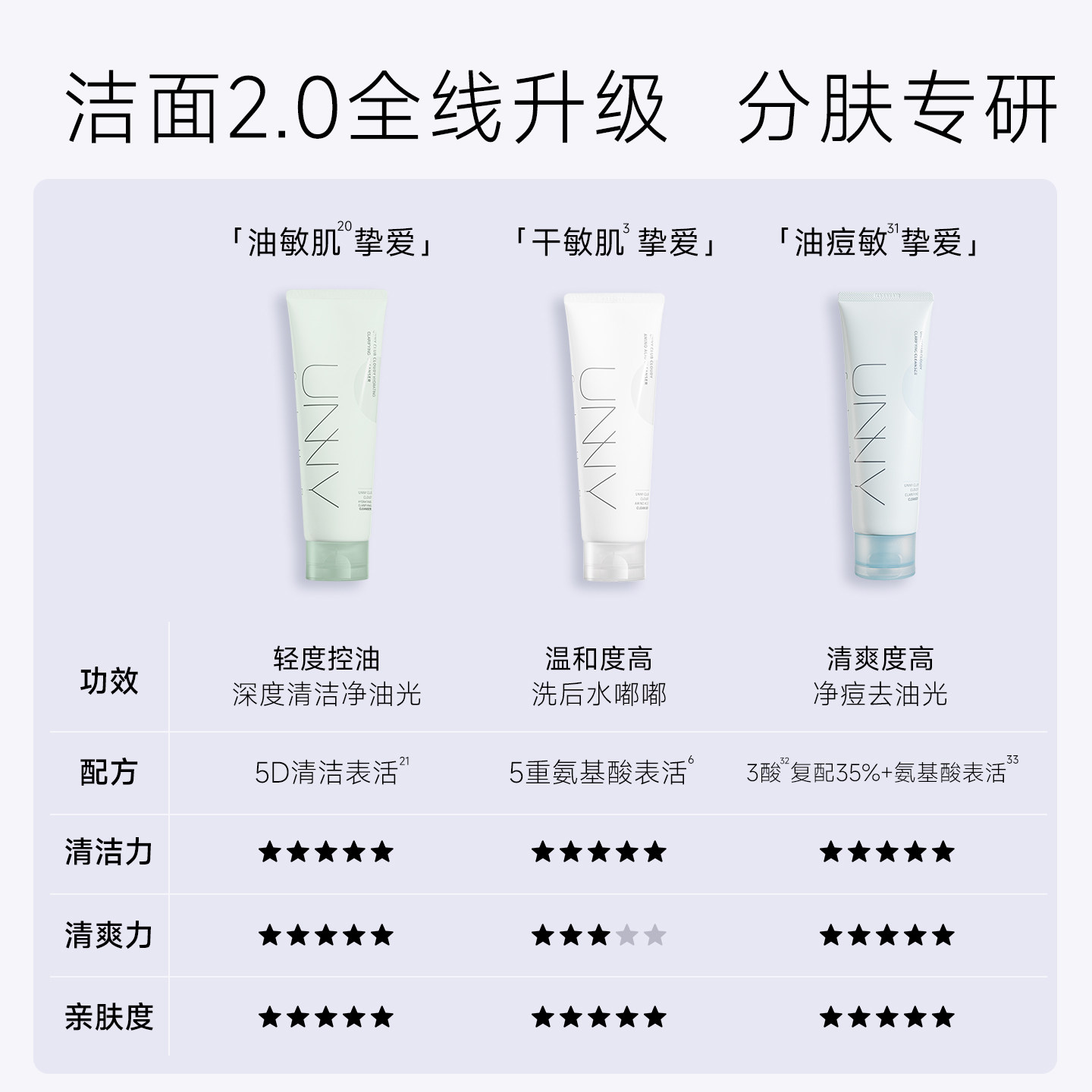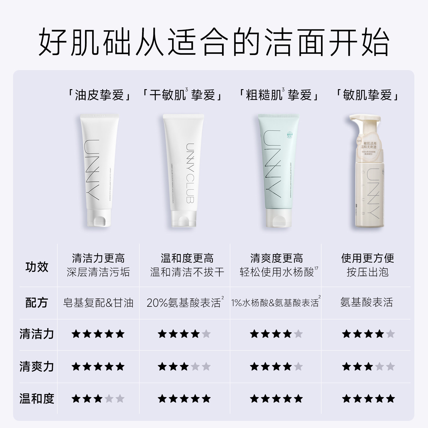 unny氨基酸洗面奶女温和深层清洁毛孔干油皮悠宜控油水杨酸洁面乳