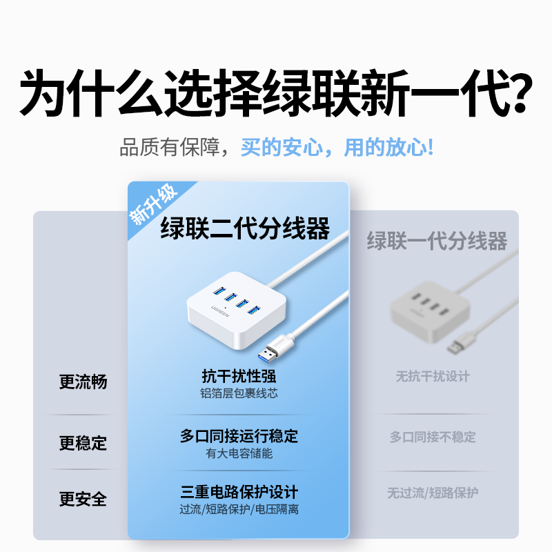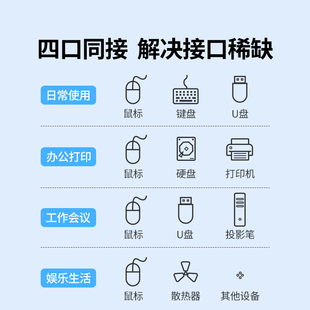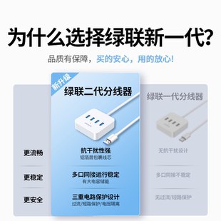 绿联usb拓展坞插头多口一分二扩展器typec集线器hub3.0延长线笔记本桌面台式 电脑多功能转换器U盘加长分线器