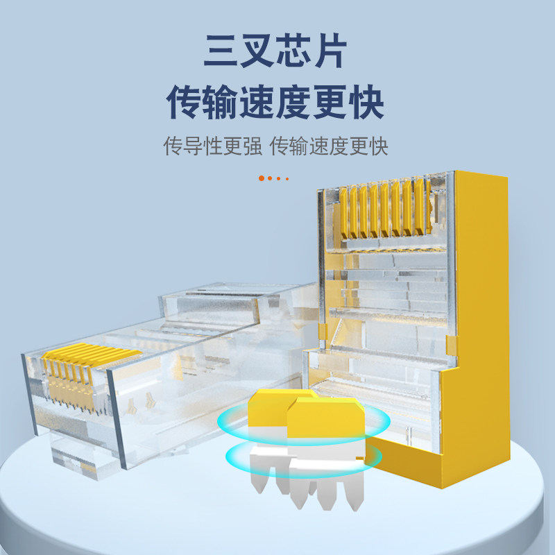 100个 8P8C超5类6类超五类六类屏蔽电脑网线水晶头优质8芯镀金3U过测试 盒 网络水晶头RJ45 精连