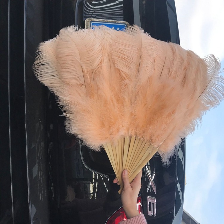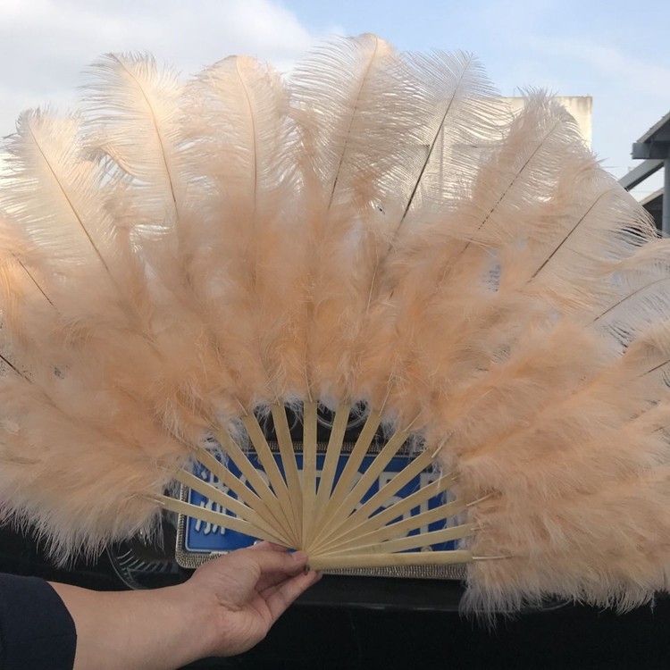 舞台酒吧表演出唱会电影cosplay道具双层大号香槟色鸵鸟羽毛扇子