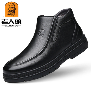 皮鞋 老人头棉鞋 中老年爸爸鞋 保暖羊皮毛一体高帮鞋 男真皮羊毛冬季