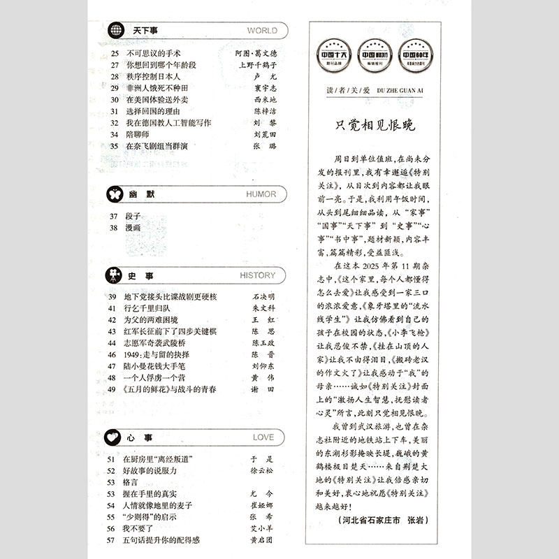 特别关注杂志 成熟男士 12月 可选 读者文摘新闻 2025年增刊 25周年精选本 2026年 现货 2025年1
