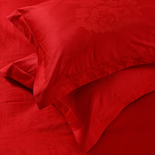 富安娜家纺婚庆婚房新婚大红结婚套件被套床单床上四件套全棉纯棉