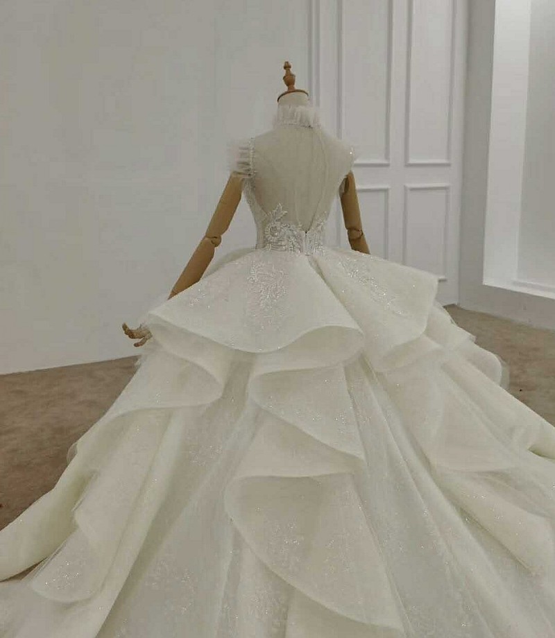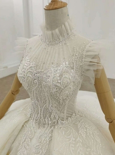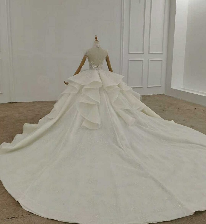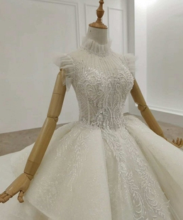 2020新款 大拖尾公主奢华新娘婚纱礼服99483 宫廷抖音网红包肩长袖