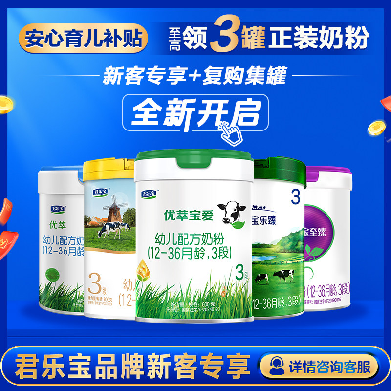 君乐宝恬适3段800g幼儿牛奶粉含乳铁蛋白旗舰正品 新客0元 试喝