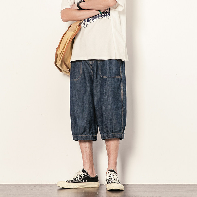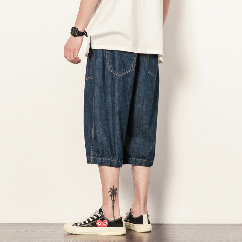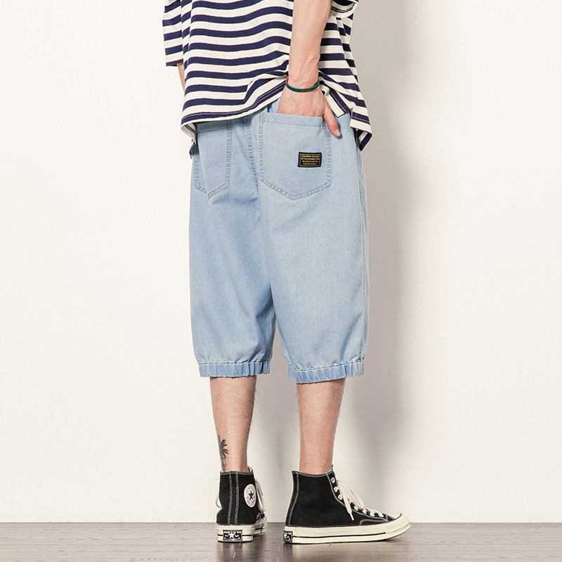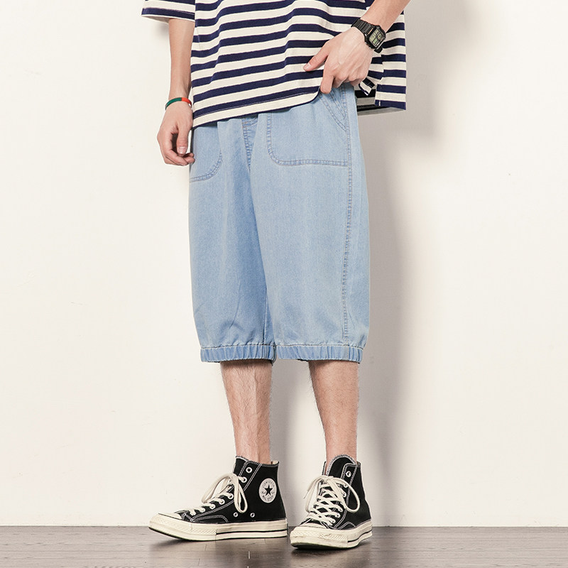 男潮牌宽松夏季 潮流纯色七分裤 加肥大码 胖子韩版 子 7分裤 牛仔短裤