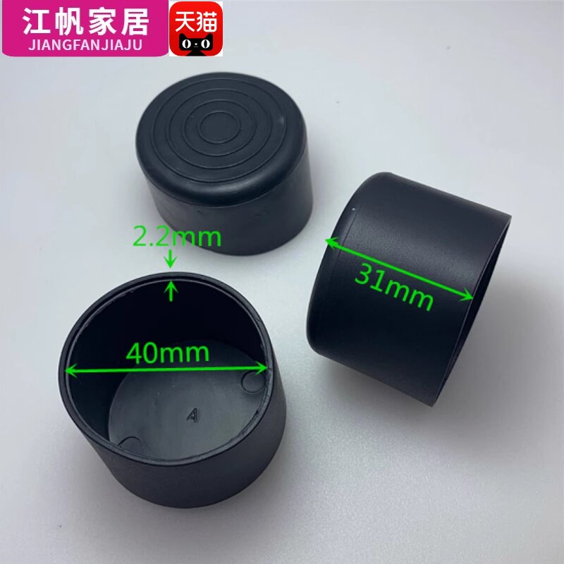 防滑缓音不锈钢管50堵头黑色圆形孔塞60管脚垫封盖堵帽外塞胶套30