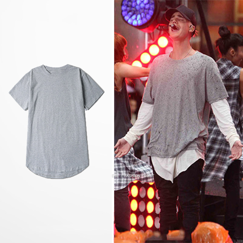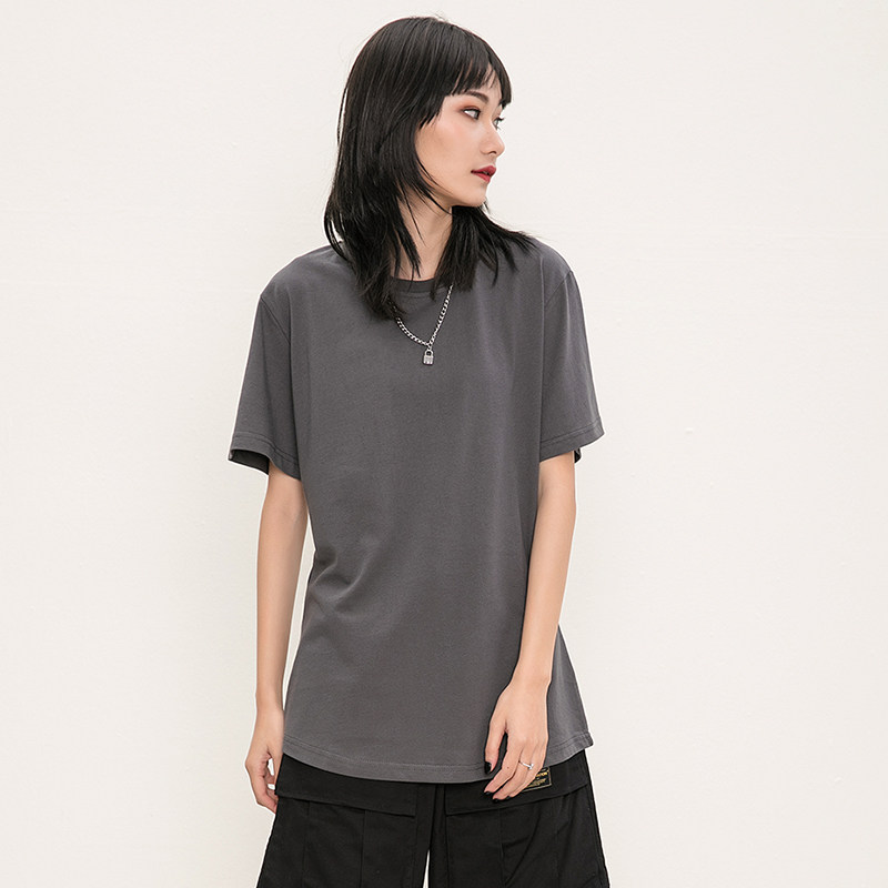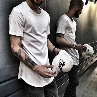 纯色蝙蝠衫 bf风宽松潮牌圆弧下摆纯棉打底衫 t恤男短袖 高街加长款