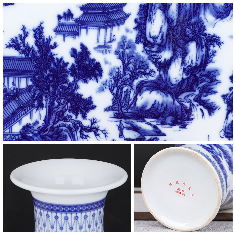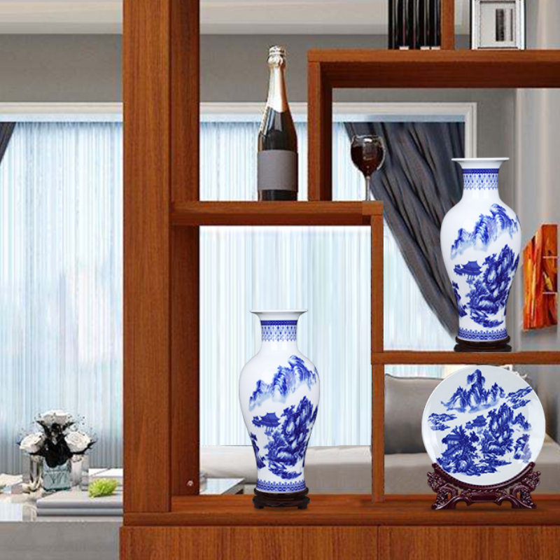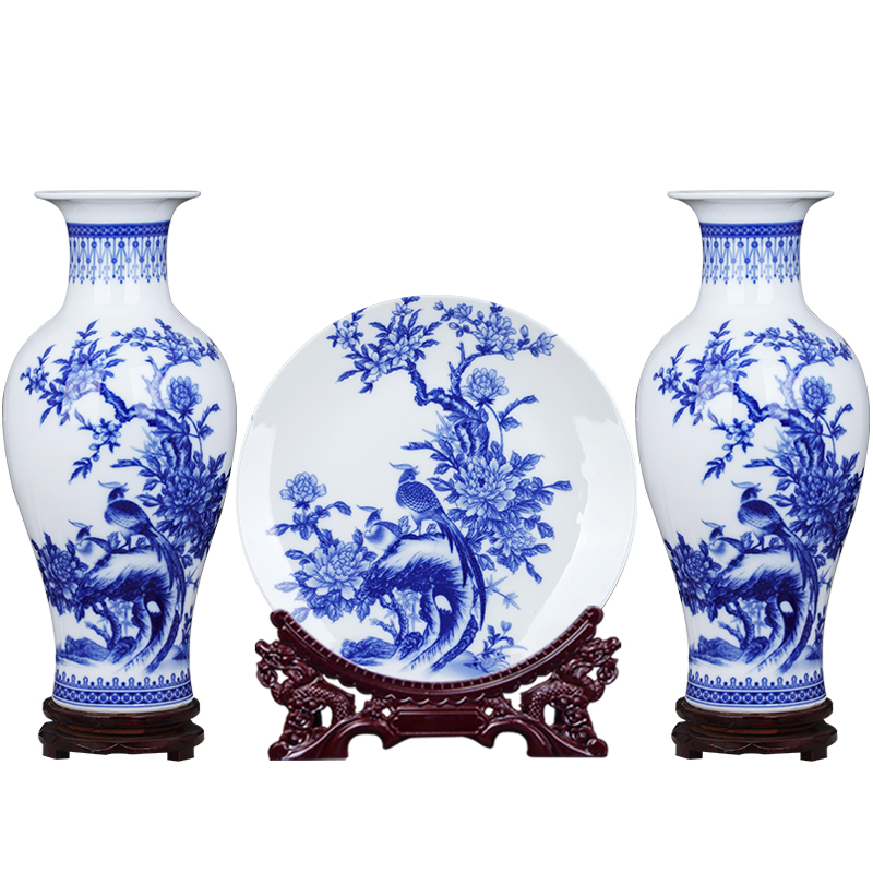景德镇青花瓷陶瓷花瓶大号三件套新中式 饰品客厅插花器 摆件客厅装