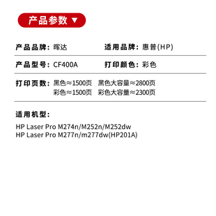 m277n彩色激光打印机Laser 晖达适用惠普cf400a硒鼓m252n m252dw墨盒hp252n hp201a m274n粉盒CF400 m277dw