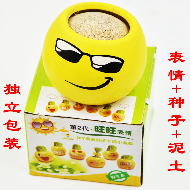 草头娃娃办公室迷你植物小盆栽青草种植表情桌面diy盆栽学生礼品