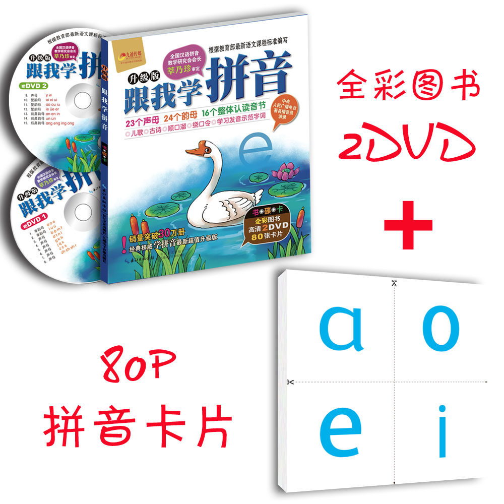 跟我学拼音升级版 DVD光盘80张卡片学前班教材幼小衔接图书视频碟