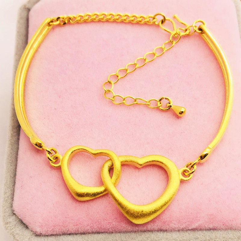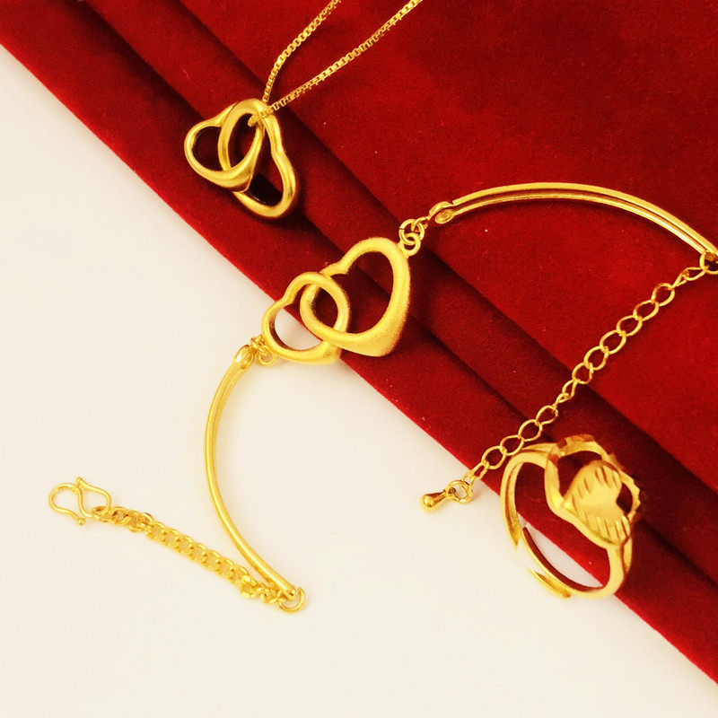 新磨砂爱心项坠欧币硬币镀金仿真沙金心心相印项链女首饰久不掉色