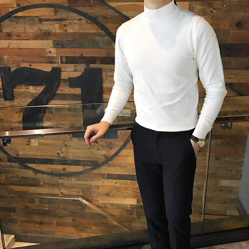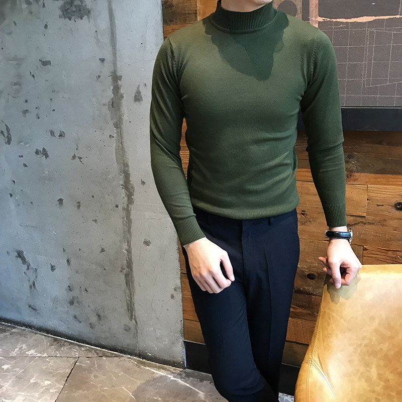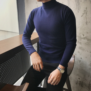 休闲百搭打底衫 韩版 半高领纯色针织毛衣时尚 修身 潮流 2022秋冬男士