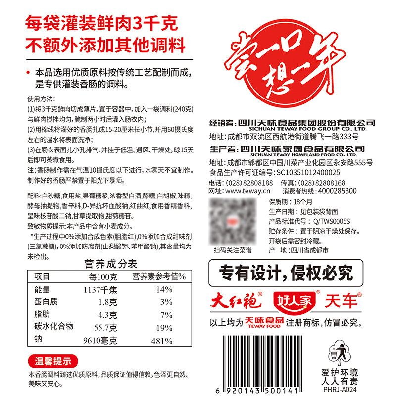 好人家广式 味香肠调料灌香肠调料自制做香肠麻辣腊肠腌制调味料