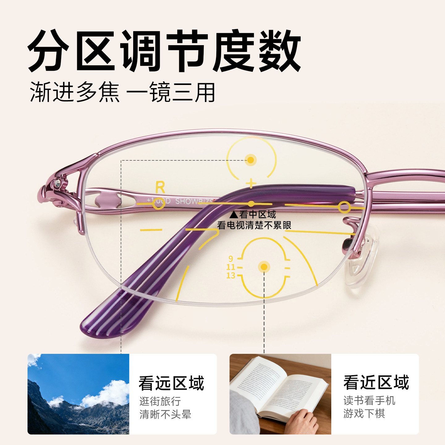 索柏高清老花镜男式 远中近三用官方品牌折叠老花眼镜 防蓝光女款