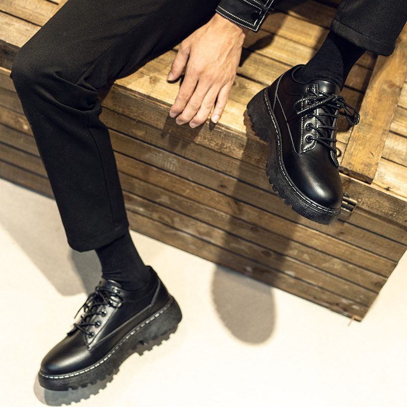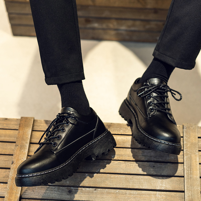 低帮软底低帮马丁靴黑色通勤大头休闲皮鞋 马登英伦风德比男士 工装