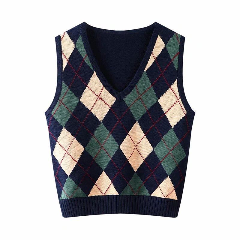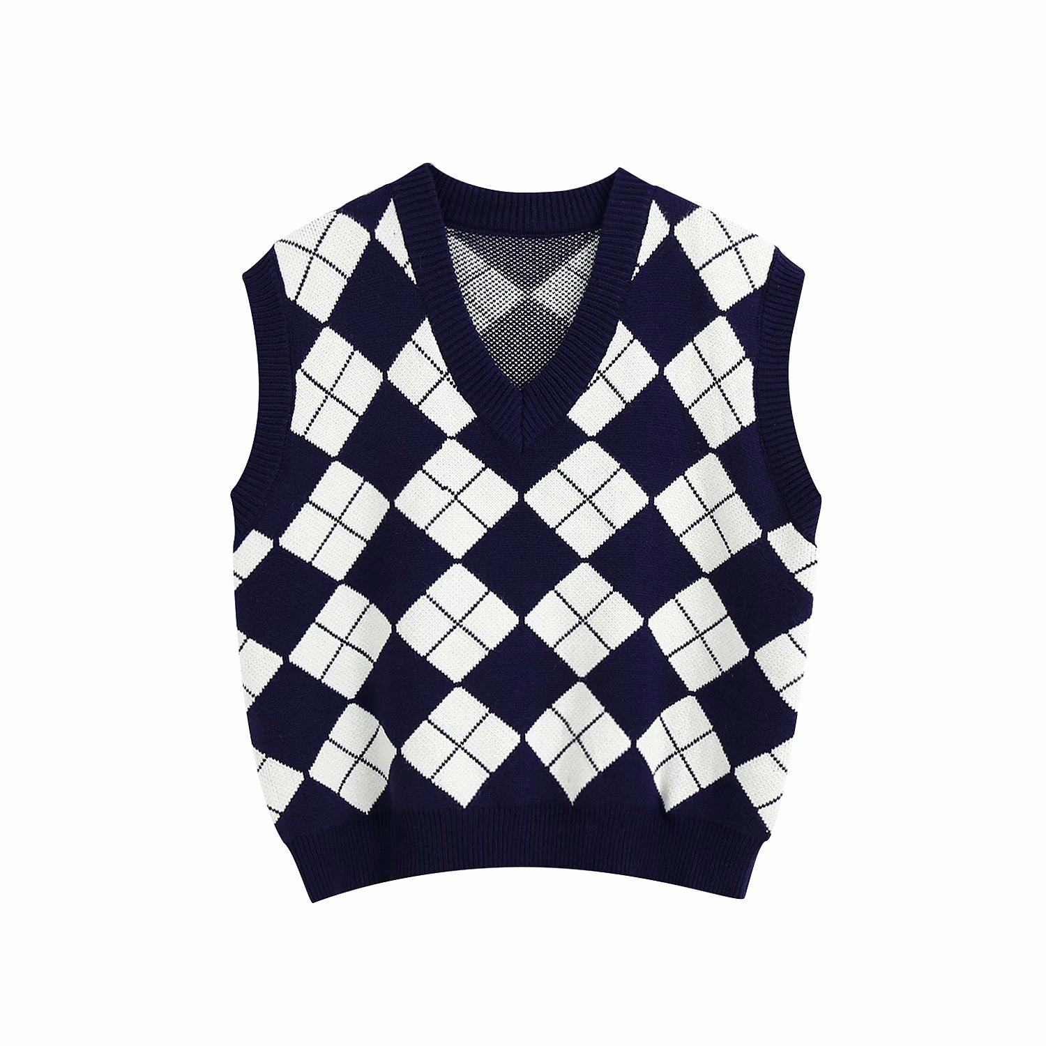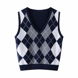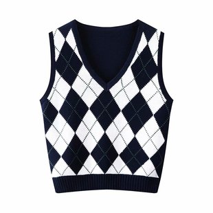 女菱形V领百搭背心毛衣针织衫 Brandy 秋冬美式 坎肩马夹 girl