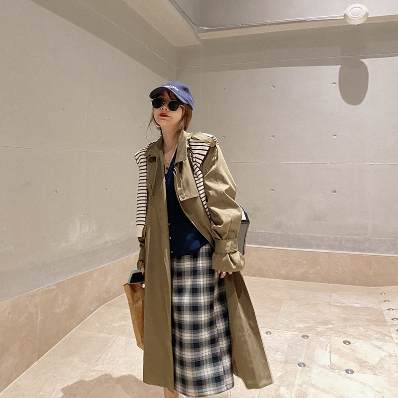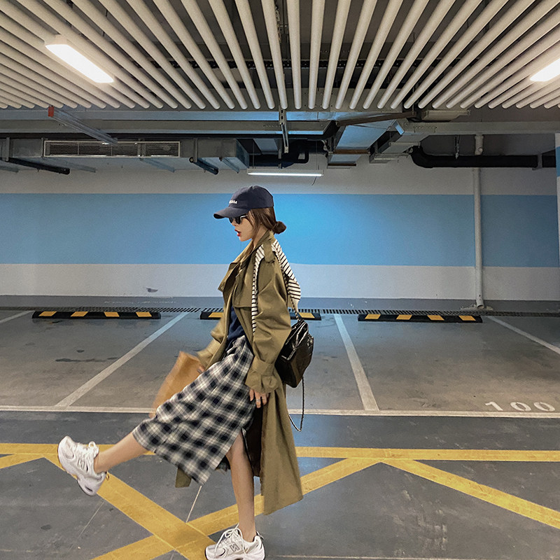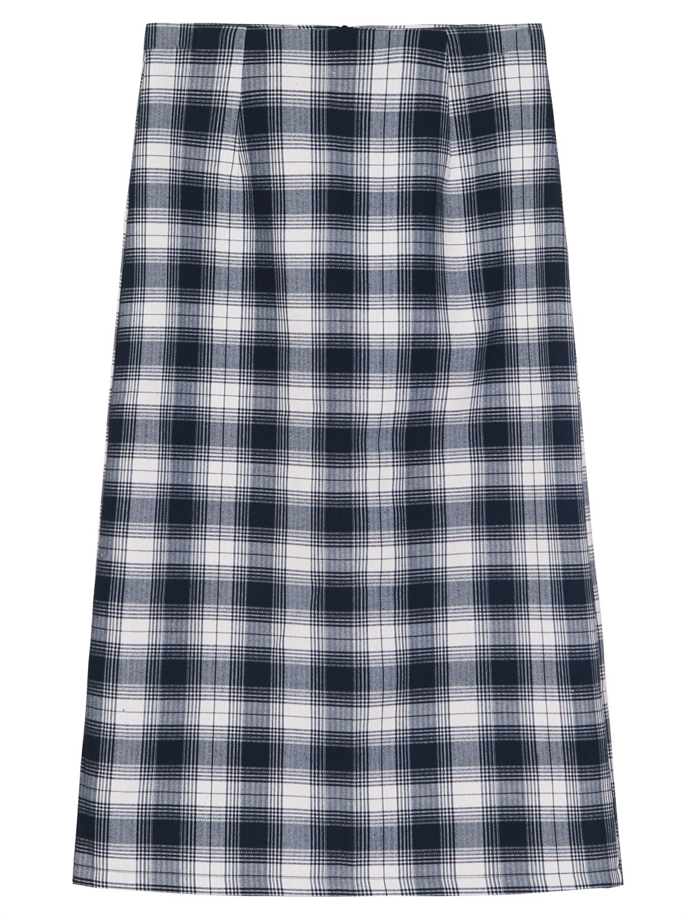 a字高腰显瘦开叉裙子 秋设计感中长款 YUKISS 内搭格子半身裙