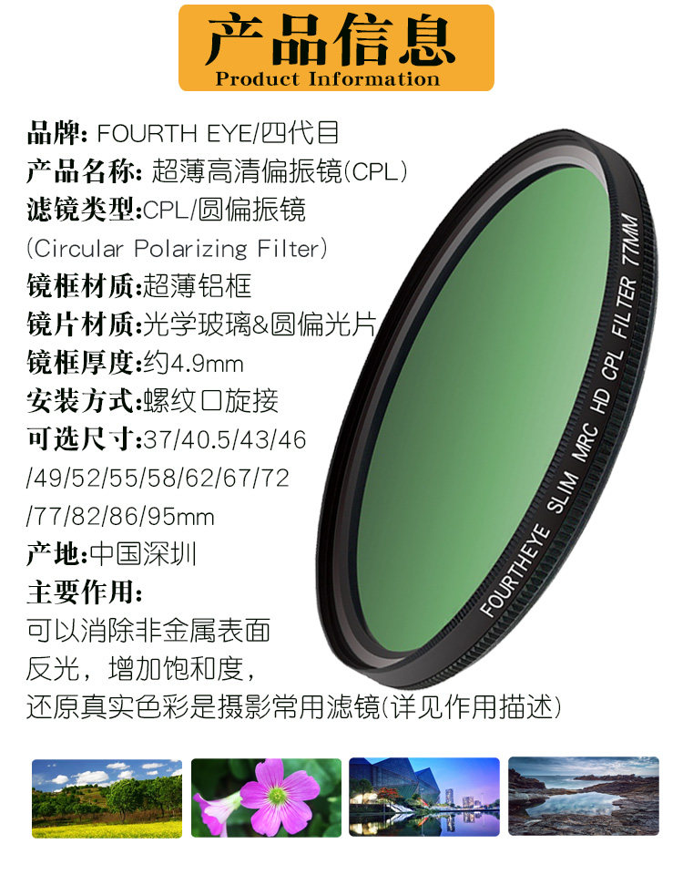 Fourth 82mm Eye超薄高清CPL偏振镜单反滤镜49