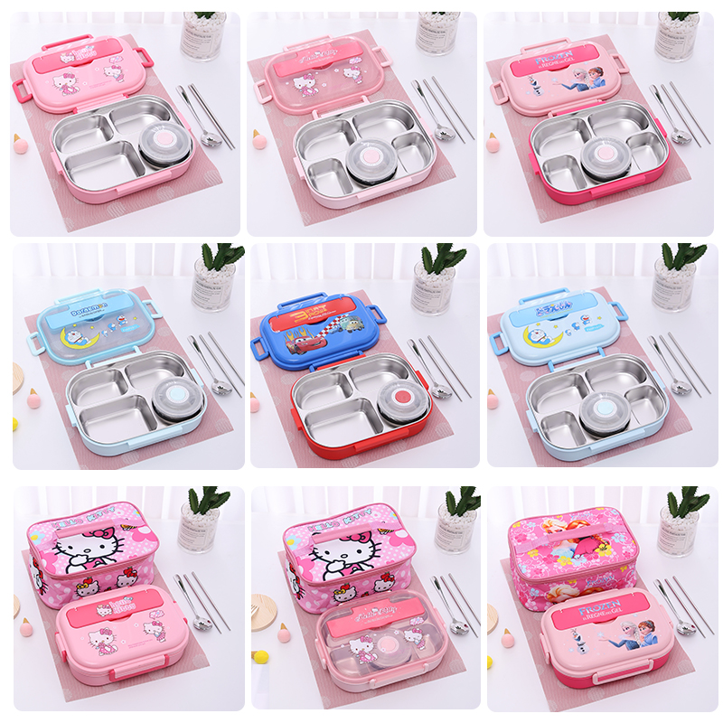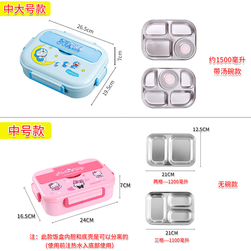 304不锈钢保温饭盒分隔带汤碗便当盒卡通可爱儿童学生上班族餐盒