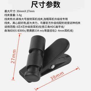 适用黑黄鹂耳机线夹大号旋转IE800S耳塞面条线夹子升级线专用线夹跑步运动固定夹子子5mm宽领口线夹360度旋转