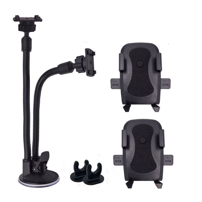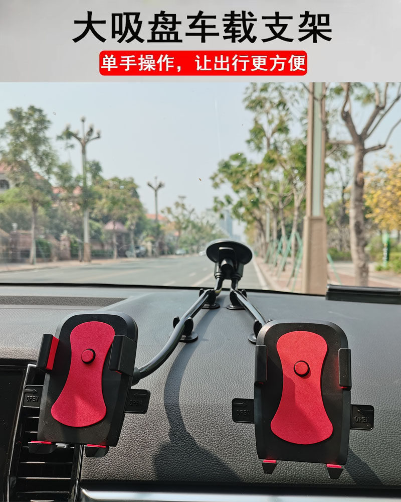 创意汽车双杆双夹双用车载手机GPS挡风玻璃吸盘通用直播支架 包邮