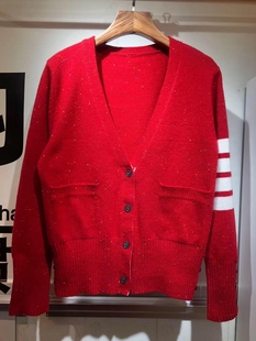 女秋冬修身 高级手工定珠圆领100羊毛针织开衫 打底毛衣 Lin Maven