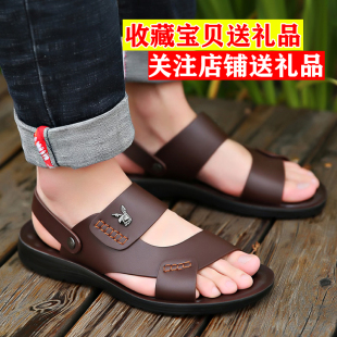 夏季 2026新款 真皮软底防滑沙滩鞋 大码 男士 休闲两用外穿凉拖鞋 凉鞋