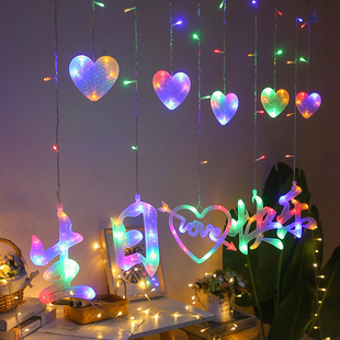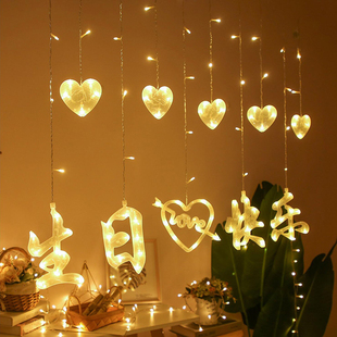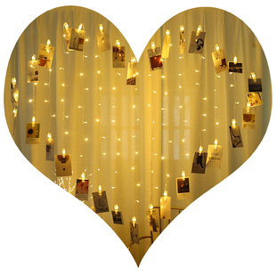 照片夹子网红墙装 饰彩灯房间心形窗帘灯生日室内布置浪漫求婚氛围