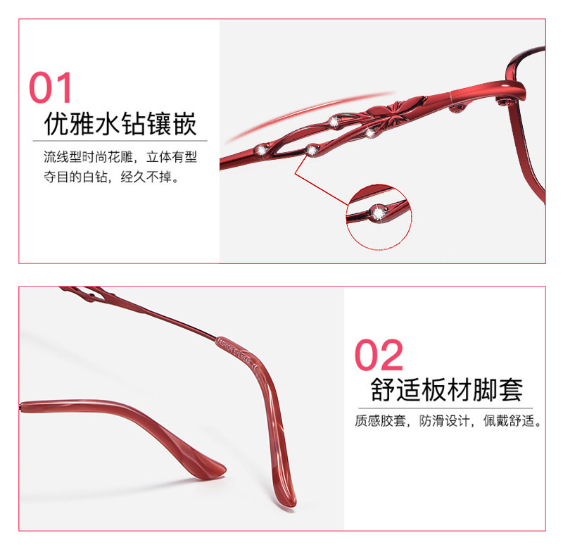 200度老人老光眼镜 150 高清老花镜女时尚 超轻优雅防蓝光疲劳100