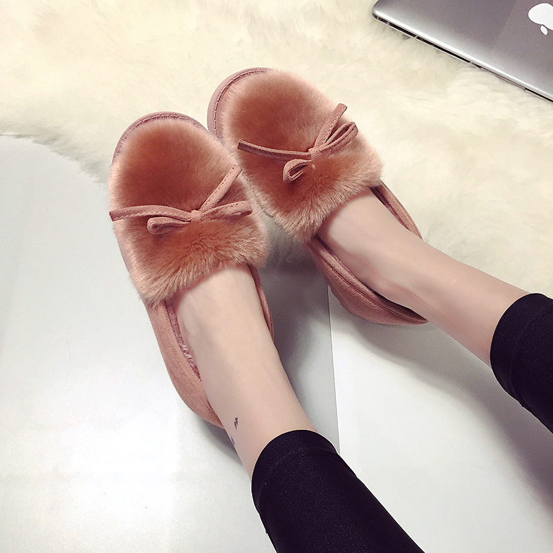 平底鞋 女鞋 防滑孕妇鞋 秋冬季 棉鞋 女加绒韩版 毛毛鞋 学生 保暖豆豆鞋