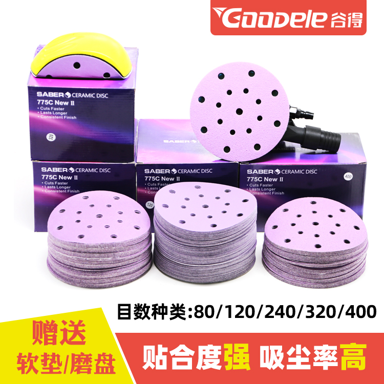 干磨砂纸打磨机砂纸 6寸17孔干磨机费斯圆磨砂纸锋速方形抛光砂纸